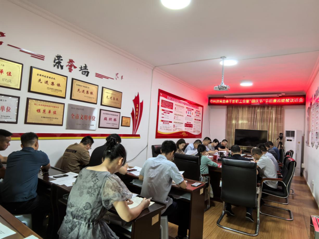 2024年9月30日,市科技局党组书记、局长肖宁主持召开全体干部职工会暨国庆节节前集体廉政提醒谈话会,市纪委市监委派驻市人大机关纪检监察组副县长级纪检监察员、在家全体干部职工参加会议。
